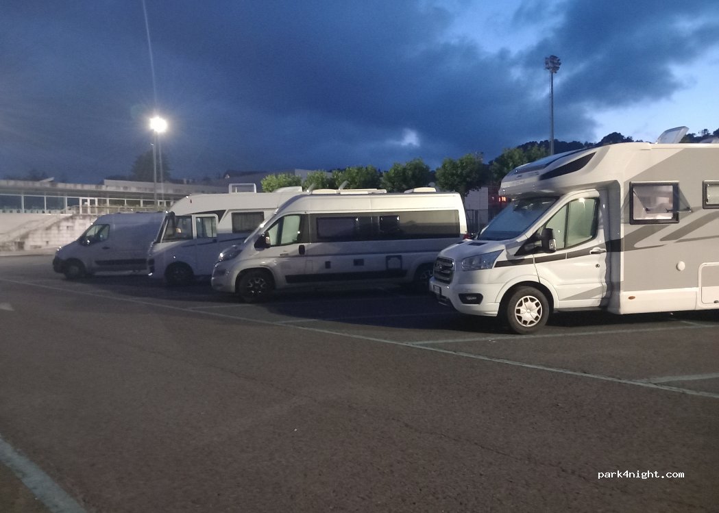 Parking area free between 20-10. Quiet and safe just next to the village and beach. Public toilets open during daytime which are very clean.