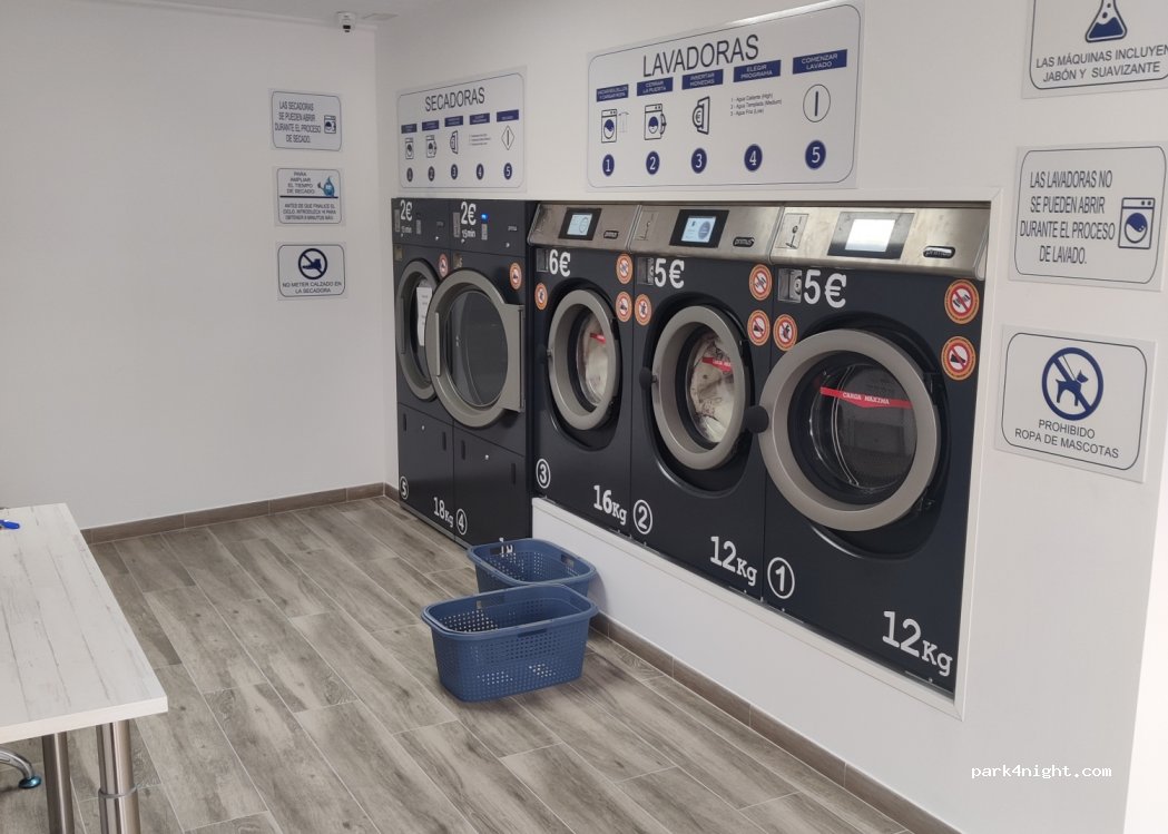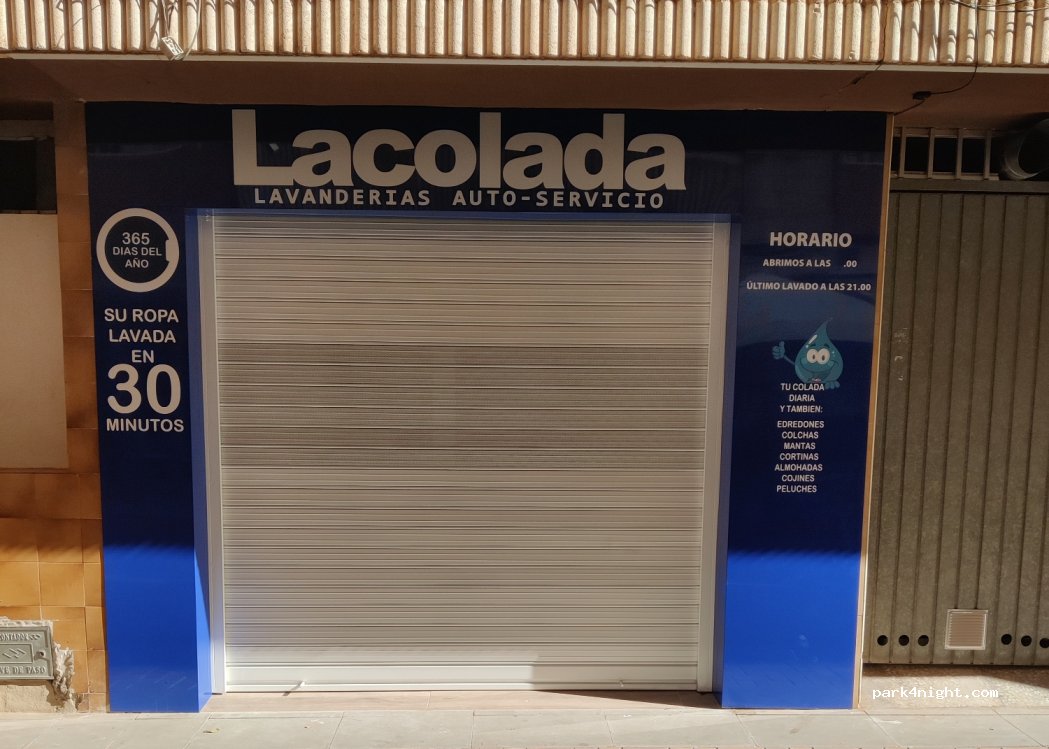 Laundry on a pedestrian street, in front of a bar and next to a supermarket, three large parking lots 200 meters from the place, perfect for parking to do the laundry.