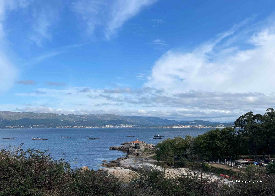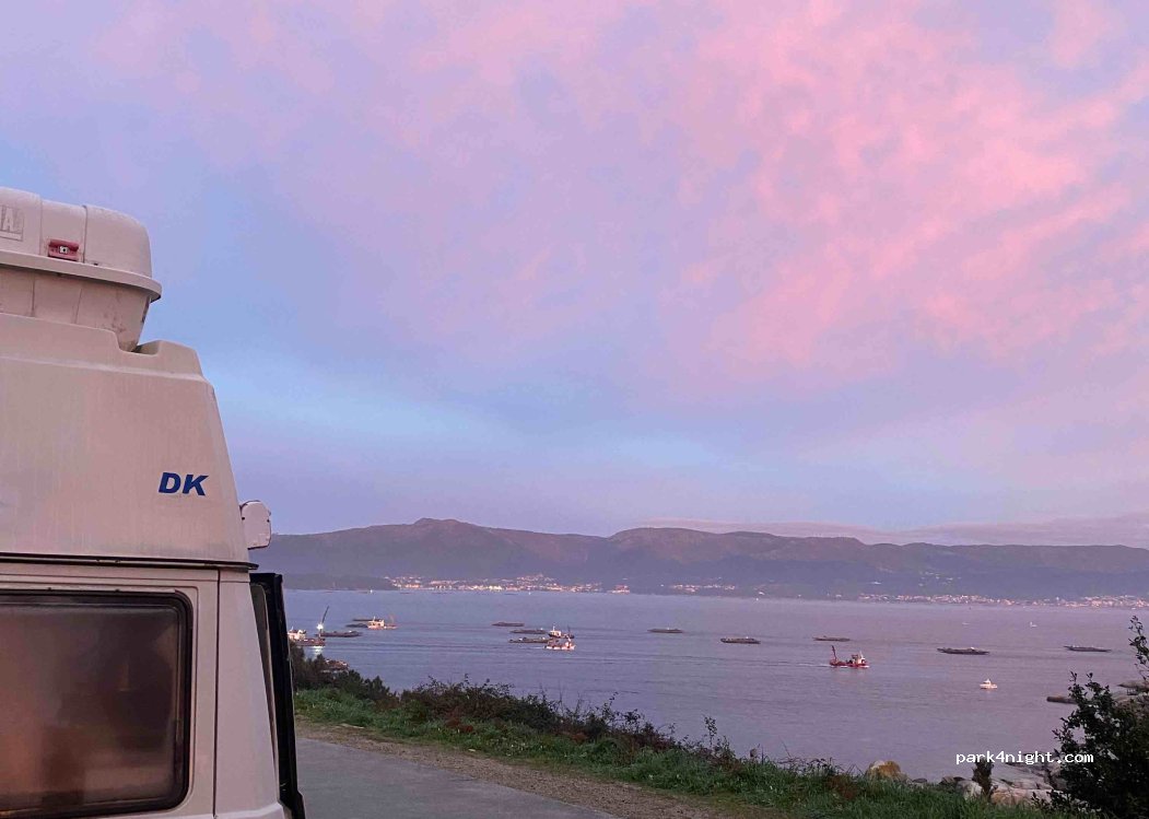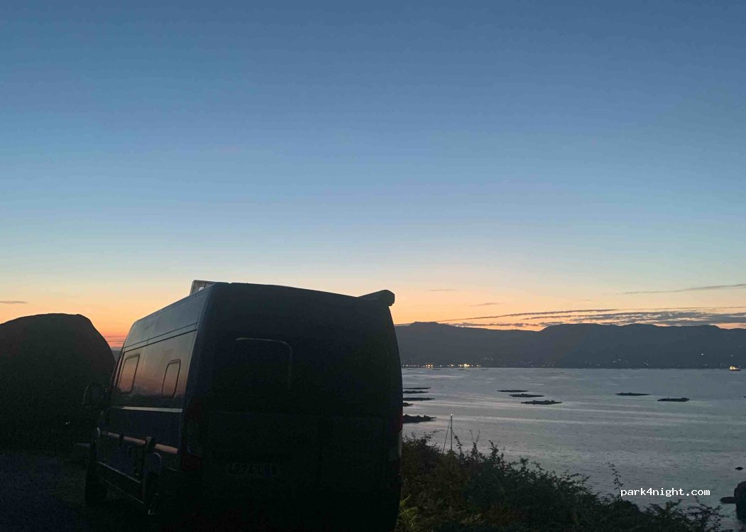 Vue sublime ! Aucun service mais un bar à dix minutes à pied. Pas beaucoup de stationnements et en bord de route mais pas très passante. Peu de place donc prévoir d’arriver tôt ou tard (les gens se garent là pour aller à la plage). Plage proche interdite au chien, bar très sympa à 10/15mn à pied et balade vers le phare. Attention aux moustiques !
