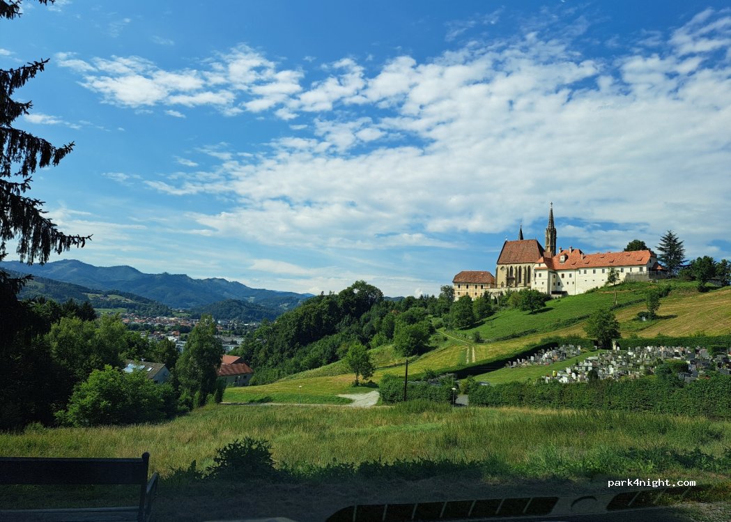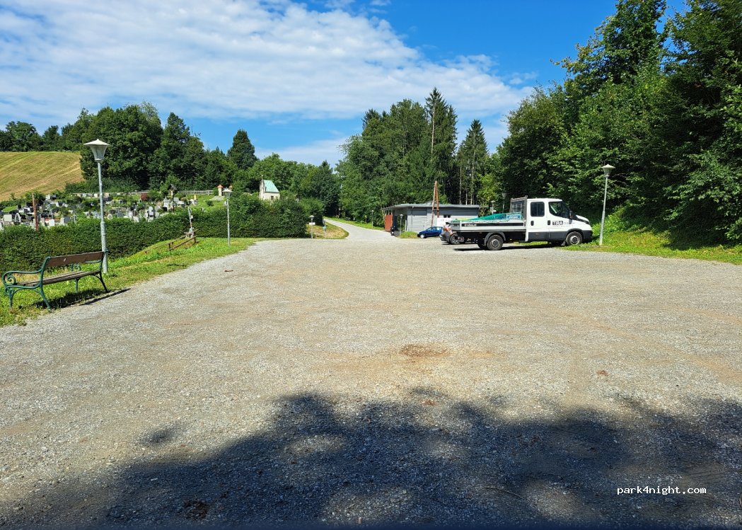 Public parking lot at the church Straßengel. Starting point for hikes or mountain bike tours, e.g. to the General's grave, Gösting ruins, Fürstenstand...