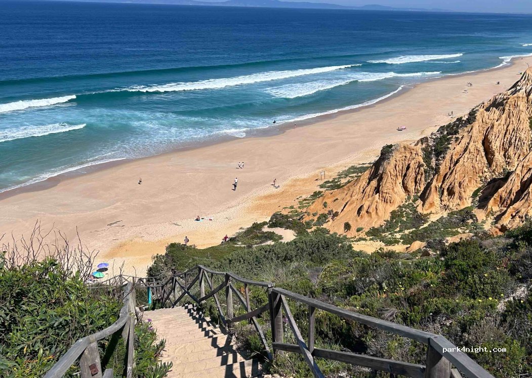 Öffentlicher Parkplatz vor dem ehemaligen Strandcampingplatz Galé. Sehr geräumig und ruhig. Ideal zum Übernachten.