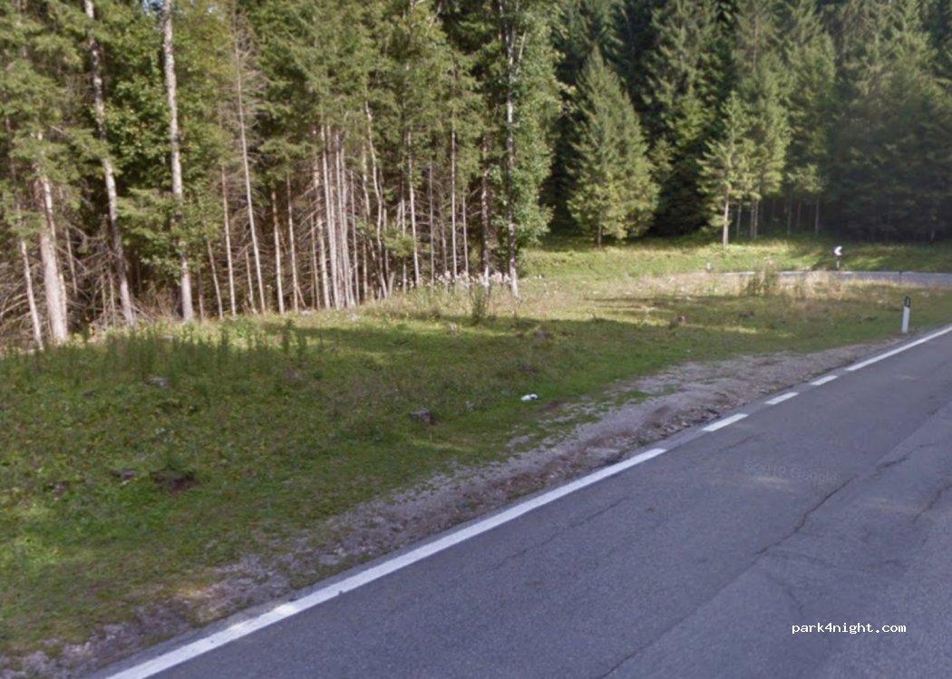 Zona junto a la carretera y bajo la sombra de la Marmolada, con poco tránsito de coches por la noche. Sin servicios, pero junto a un hermoso río que baja del glaciar de la Marmolada.
