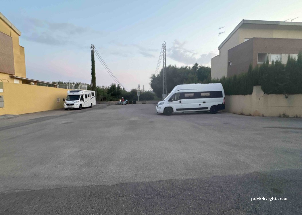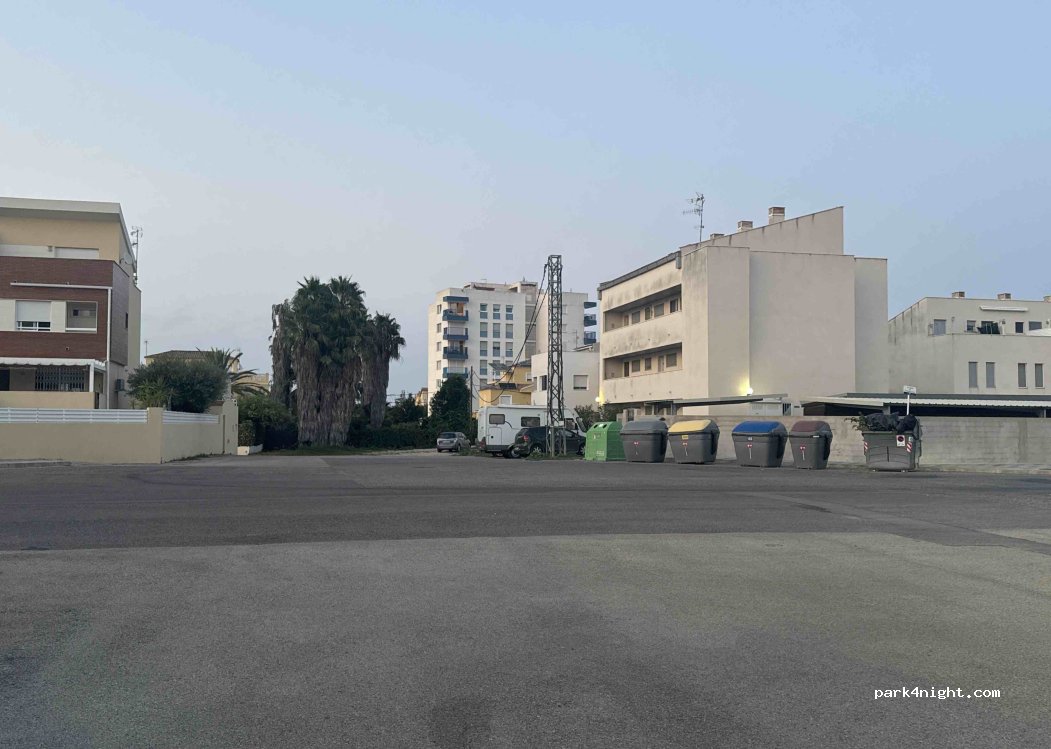 Muy cerca del parking de autocaravanas que solo es diurno - se puede venir aqui para pasar la noche y volver allí por la mañana, ya que está tocando la playa. Vecindario tranquilo y por la mañana da la sombra. Espacio para 5 vehículos.