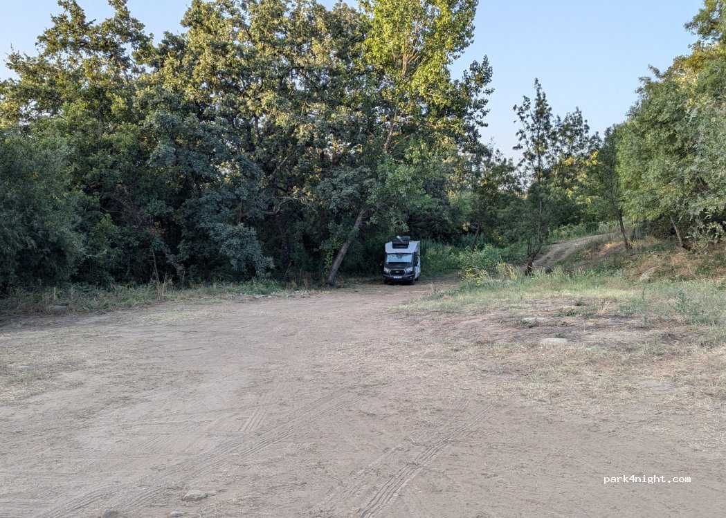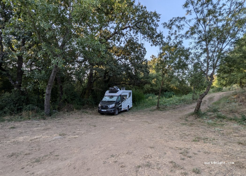 hemos pasado una noche completamente solas, no había ninguna furgoneta o autocaravana. el suelo está bastante desnivelado pero hay alguna parte que está más llana. plena naturaleza. cerca del pueblo. el parking de al lado sí tiene prohibición de autocaravanas.
