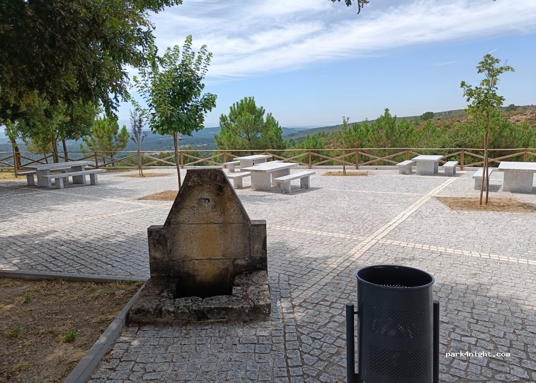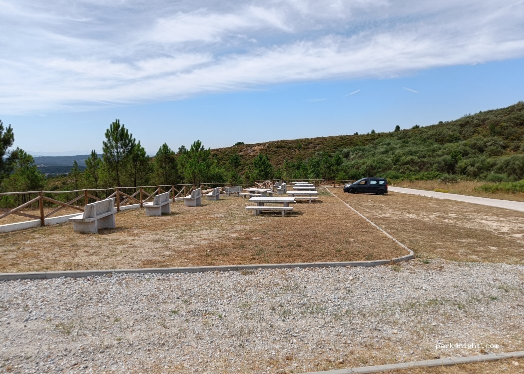 Chapel on a hill with lots of parking spaces, picnic benches, drinking water and public toilets. Nobody there on a Sunday and amazing views of the surrounding landscape.