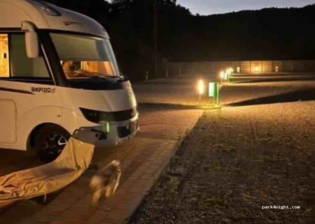Area camper con carico e scarico, docce calde , lavatrice, lavandino x piatti, abbiamo visitato il paese molto carino le persone molto cordiali. bisogna chiamare e arrivano ad aprire la sig elvira cordiale e simpaticissima noi la consigliamo area top grazie x l ospitalità
