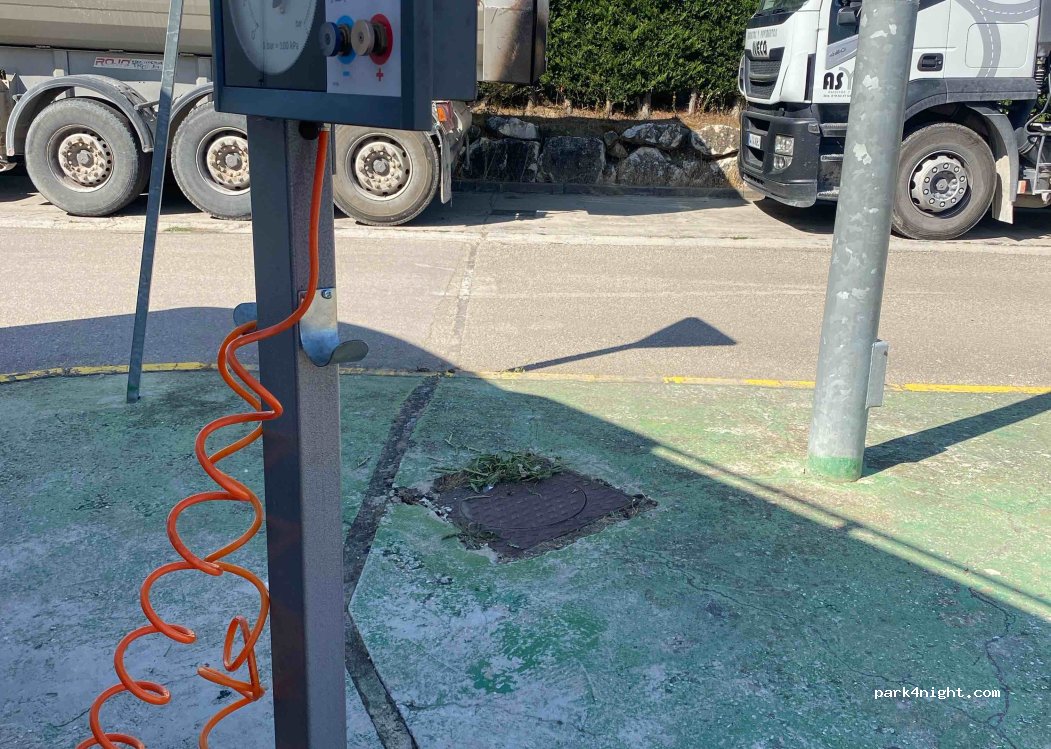 Wasser (an der Luftdrucksäule), Cafeteria, Tankstelle, Mülltonnen