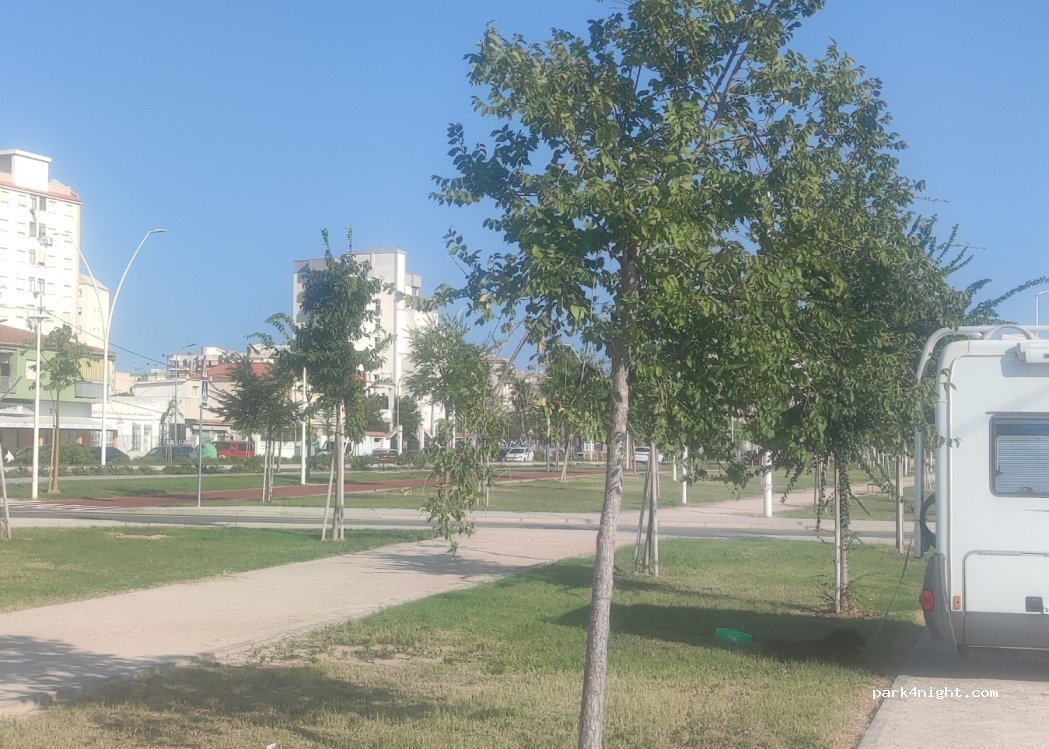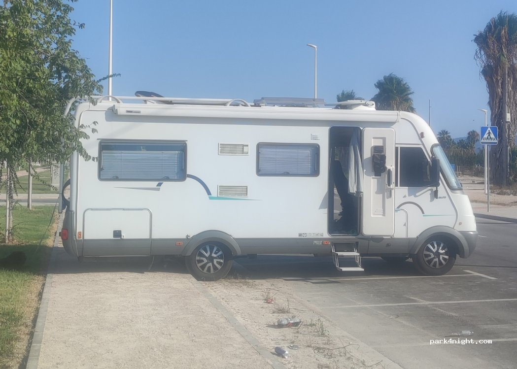 Public parking, its quite big, a lot of place even in the middle of season. We were staying for one day (without night) but I think its not prohibited to stay by night. No fees. 10mmin walk to the beach. No services, only parking.