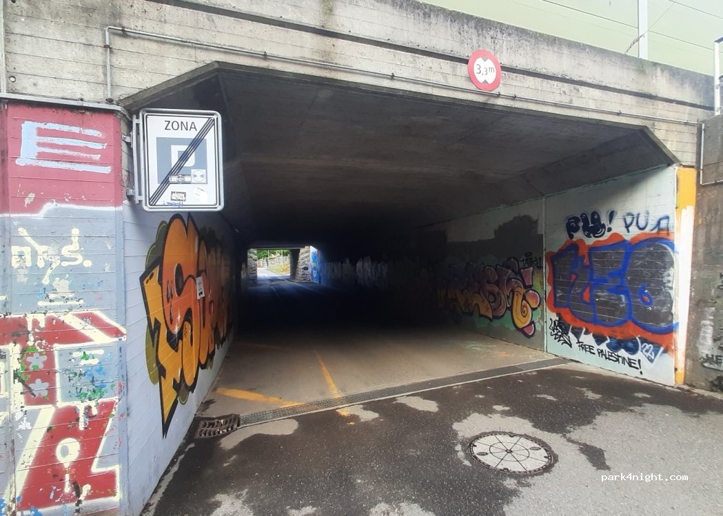 Eintrag ist falsch! An der Durchfũhrung unter der Autobahn sind “no Camping” Schilder. Und die Durchfahrt geht nur für VW Bus o.ä.