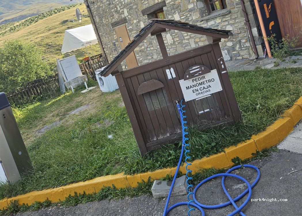 Aire de service avec eau et air gratuite si on prend l'essence chez eux.