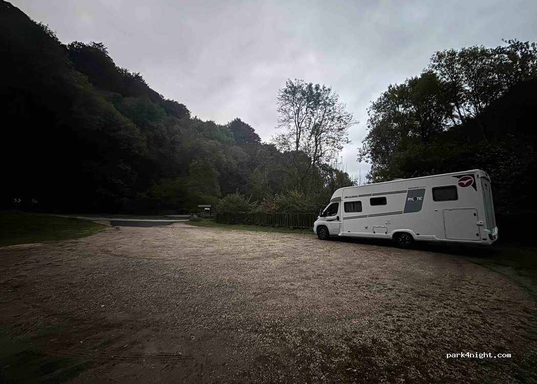 Es sólo aparcamiento de día, hay carteles prohibiendo pernoctar en todo el entorno de la fábrica. Por otro lado, la visita a las ruinas de la fábrica y a la exposición del Kultur Ola es muy recomendable.