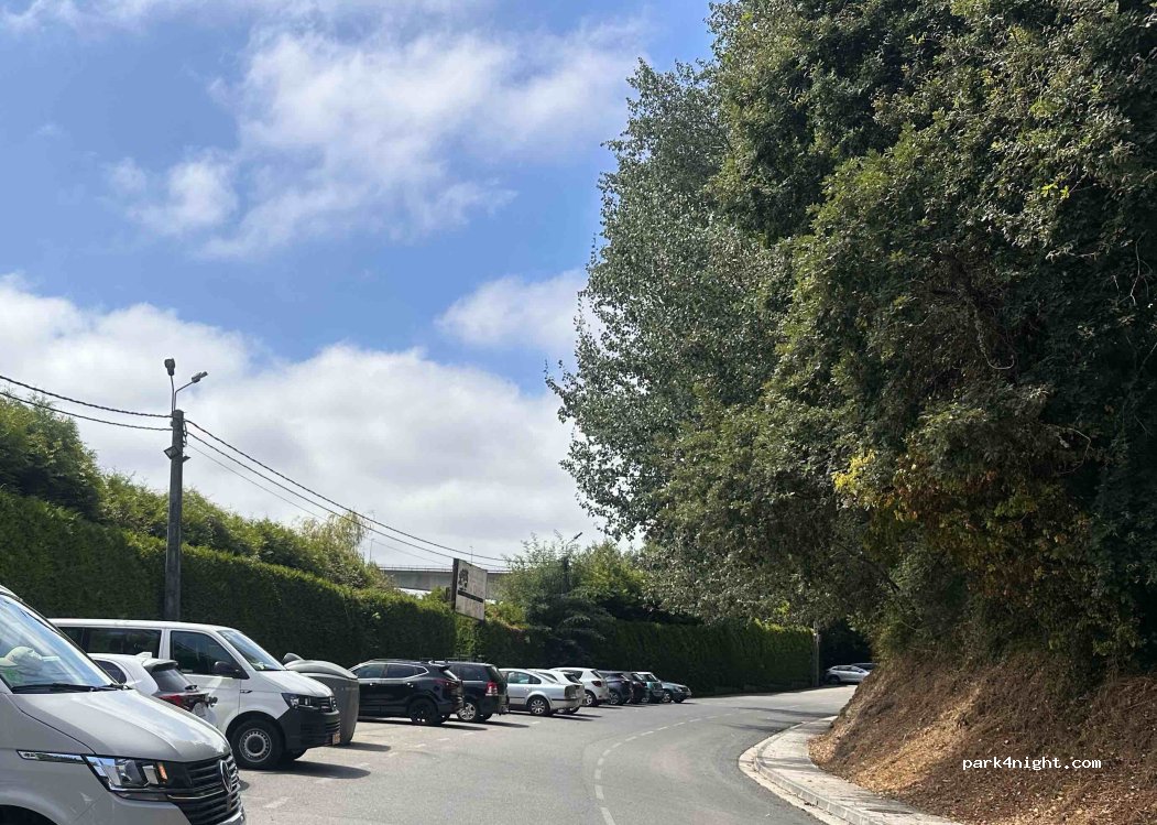 Bon endroit pour pique-niquer avec des tables et beaucoup d'espaces verts ainsi qu'un parc. Quartier tranquille avec la rivière passant à côté. Place de parking, environ 10-15 places.