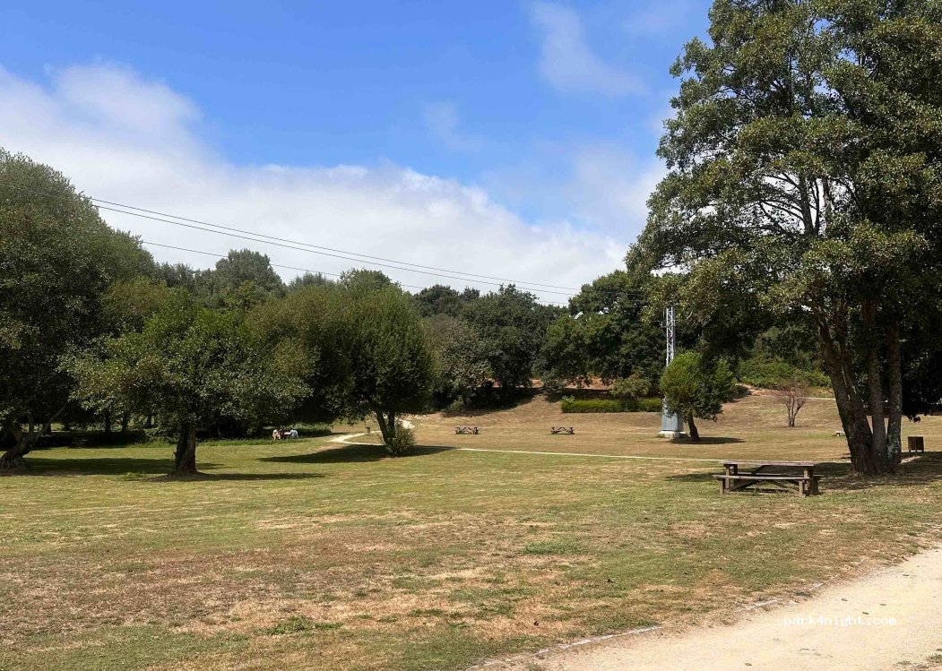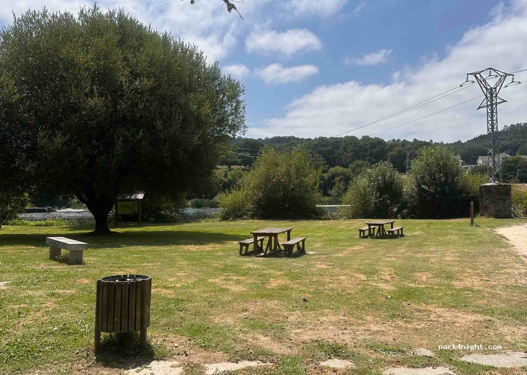 Buen sitio para hacer un picnic con mesas y mucha zona verde además de un parque. Zona tranquila con el paso del rio al lado. Sitio para aparcar, unas 10-15 plazas.