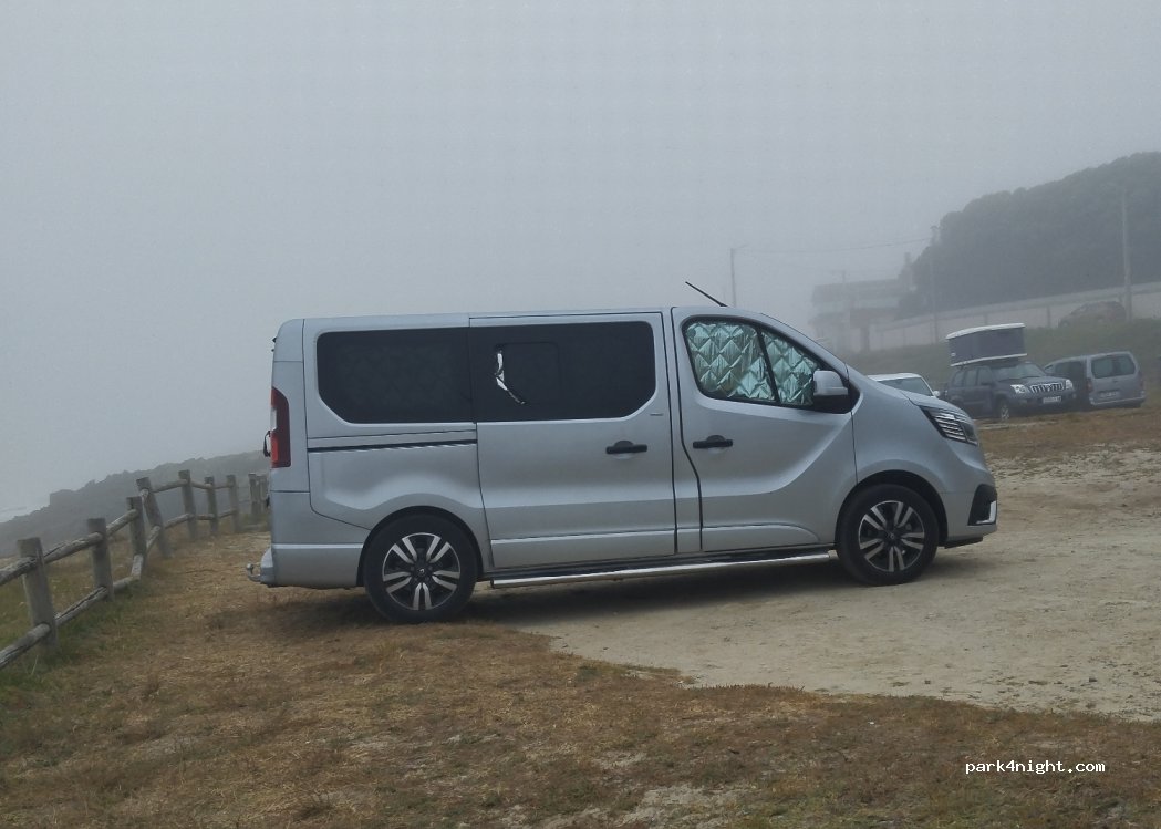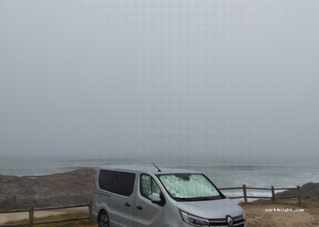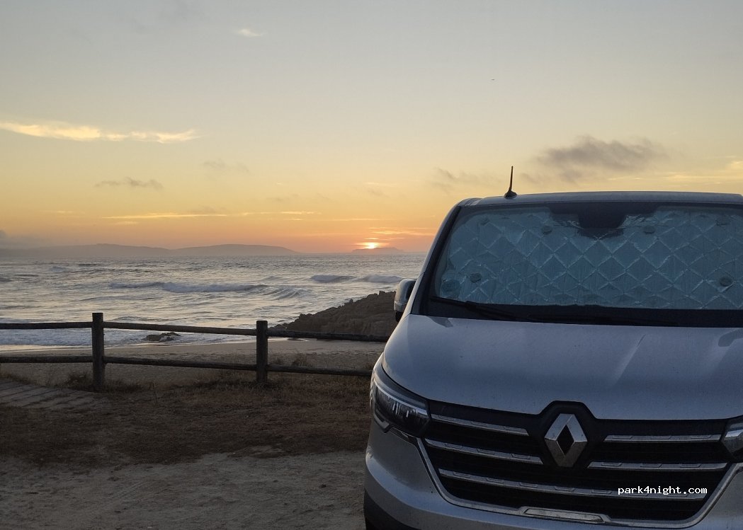 Aparcamiento de tierra justo en la entrada de la playa, un poco desnivelado según el sitio que pilles. Pasamos una noche tranquila, con vistas bonitas al mar. Ubicación perfecta. Al lado un chiringuito (food-truck) con hamburguesas, bocadillos, etc.