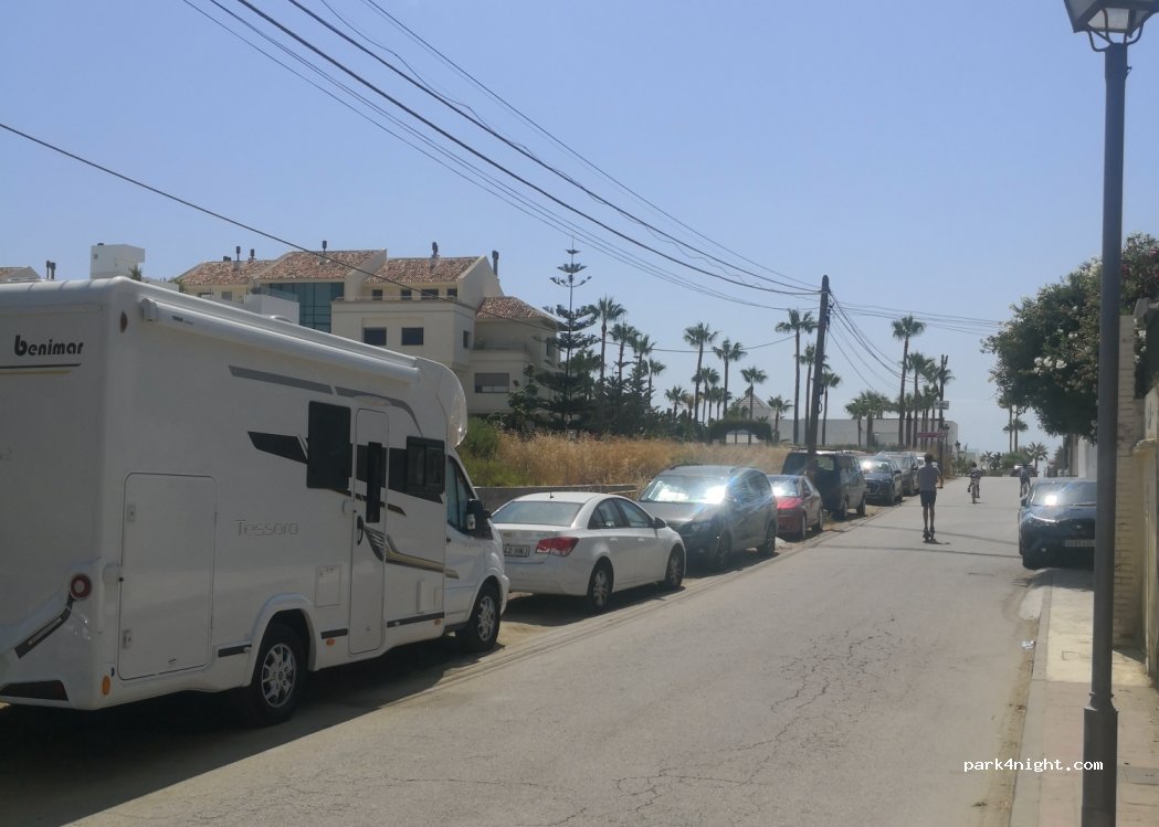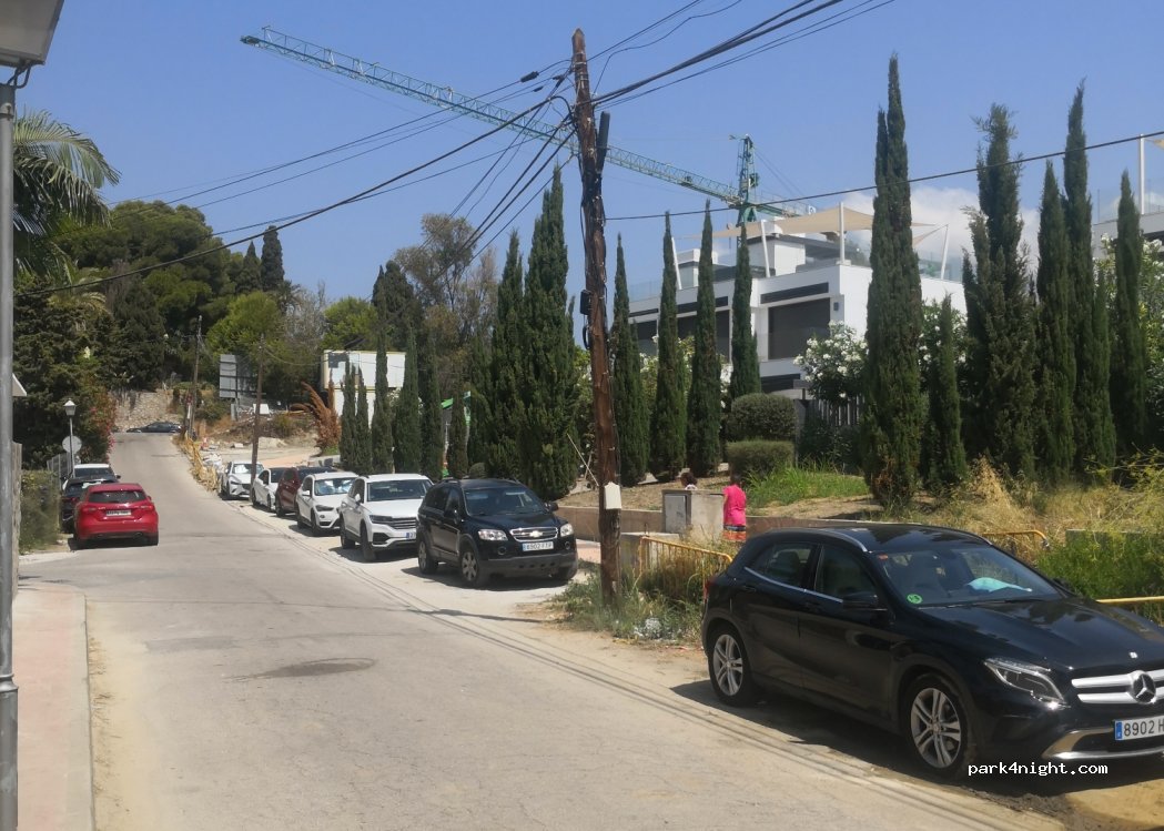 Aparcamiento en línea casi vacío por las noches. Zona muy tranquila a dos minutos del paseo de la playa. Por las calles paralelas también hay espacios para aparcar vehículos pequeños.