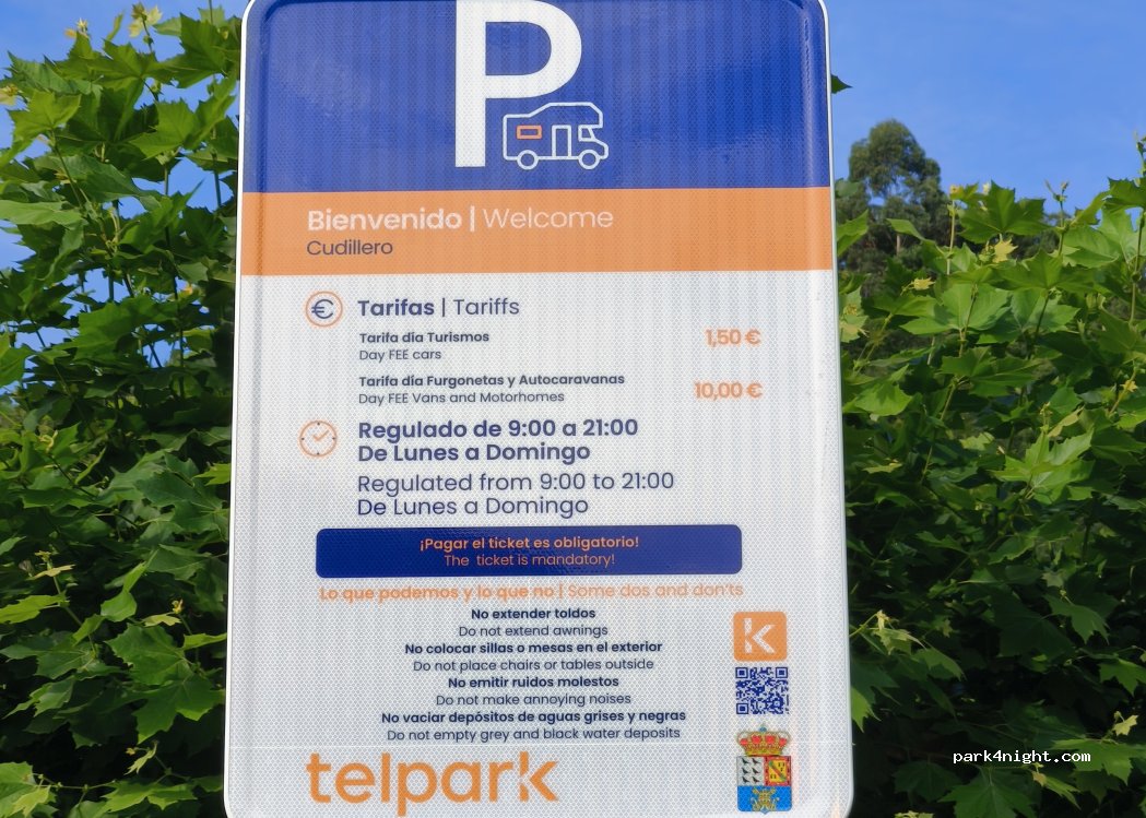 They introduce controls for motorhomes near the beach, but they fail to control the cars in this car park that break the rules & park in the spaces that are reserved for motorhomes or larger vehicles! I have been bringing my Asturian born grandchildren here regularly for many years but even they are now discriminated against because I bring them here in my motorhome. My €'s will now go elsewhere.