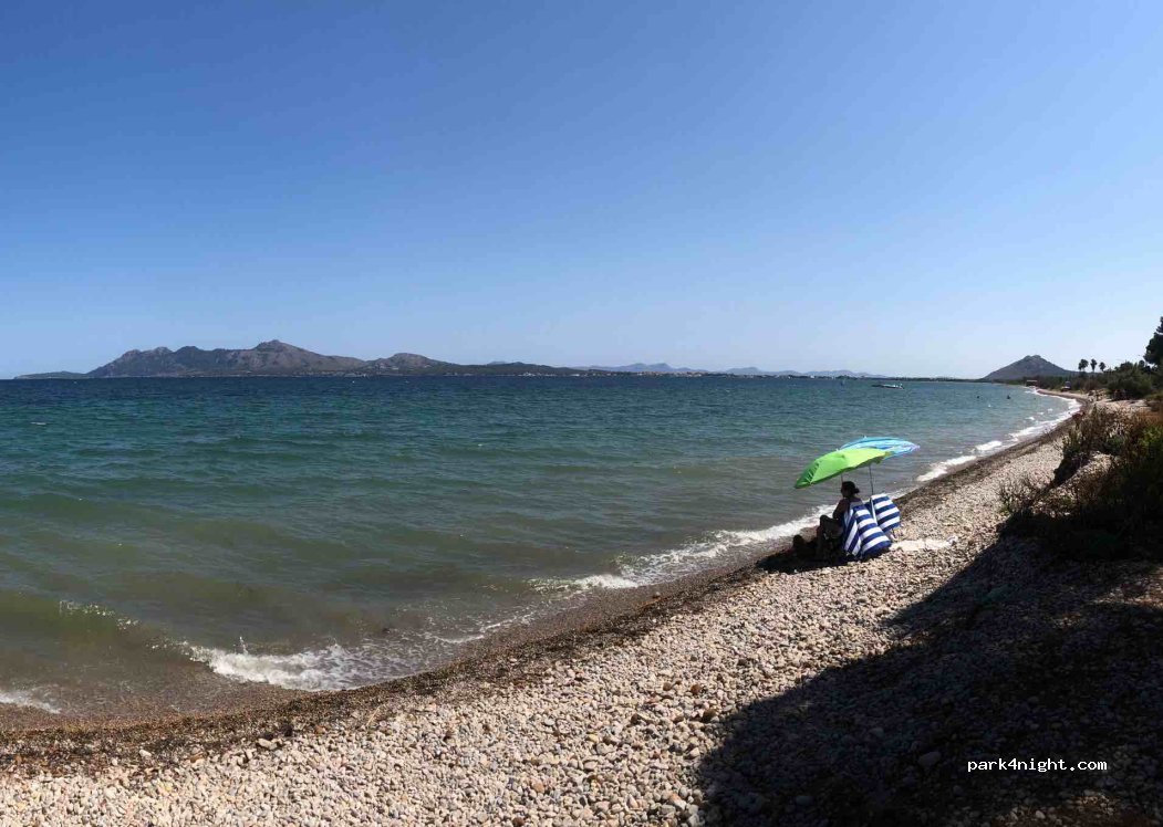 Ruhiger Ort neben der Straße, nachts nicht sehr belebt. Keine blaue Zone. Mehrere Wohnmobile parkten in einer Reihe. Ruhige Gegend mit Kiesstrand entlang der gesamten Straße. Kristallklares Wasser und einige Bäume. Der perfekte Ort, um den Sonnenaufgang zu sehen und mit einer hervorragenden Aussicht.