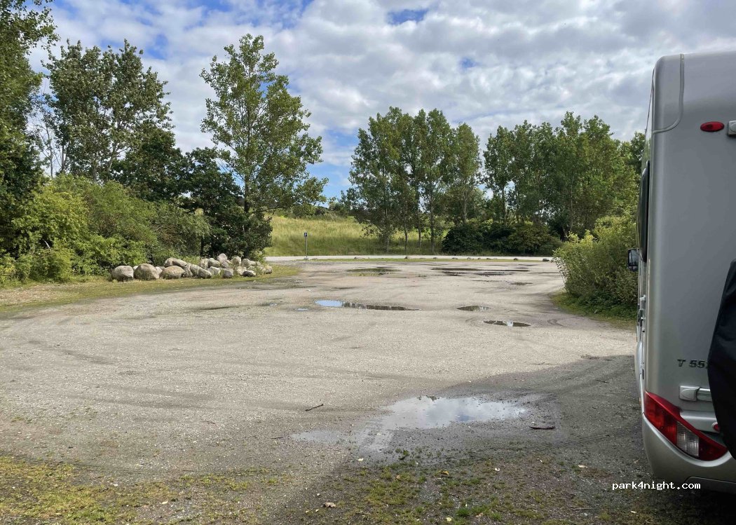 Officially signposted parking lot with no time limit on the outskirts of Malmö in an industrial area. Ideal starting point for cycling into the city, 6 km away. 500m walk across a pedestrian bridge is a gas station where you can get emergency supplies. 200m away is a small bike park route for adults and children. Free to use