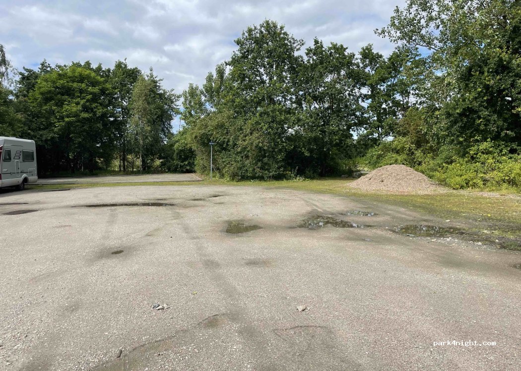 Hier in dem Bereich gibt es 3 oder 4 Parkplätze, mit Asphalt oder Schotter. ich habe hier von sonntag auf montag einen sehr ruhigen abend/nacht verbracht. ja es ist am Rande eines industrie Gebiets aber doe Parkplätze liegen in einer Grünanlage.Beim Gassigehen sind uns kleine Hasen und Fasane begegnet. In dem einen See quakten Frösche. auf jedem parkplatz stand ca ein Camper. überall Mülleimer da