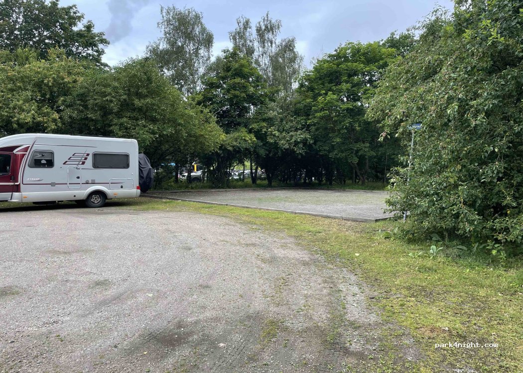 Parking officiellement signalé et sans restriction de temps en bordure de Malmö dans une zone industrielle. Point de départ idéal pour rejoindre la ville à vélo à 6 km. À 500 m à pied d'un pont piétonnier se trouve une station-service pour les fournitures d'urgence. A 200 m se trouve un petit parcours bike park pour petits et grands. Accessible gratuitement.