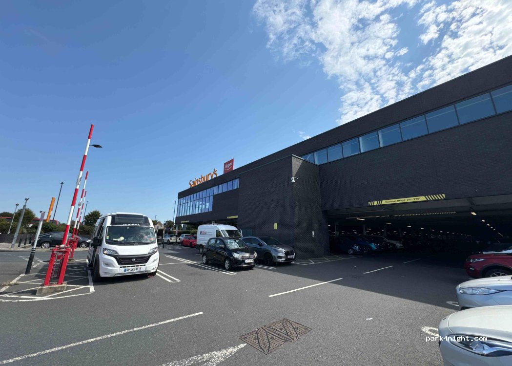 Sainsbury’s supermarket car park. 3 hours free then paid with app. Good for shopping and very good for taking the tube at ABBEY WOOD station which takes you to central London in 20 minutes.