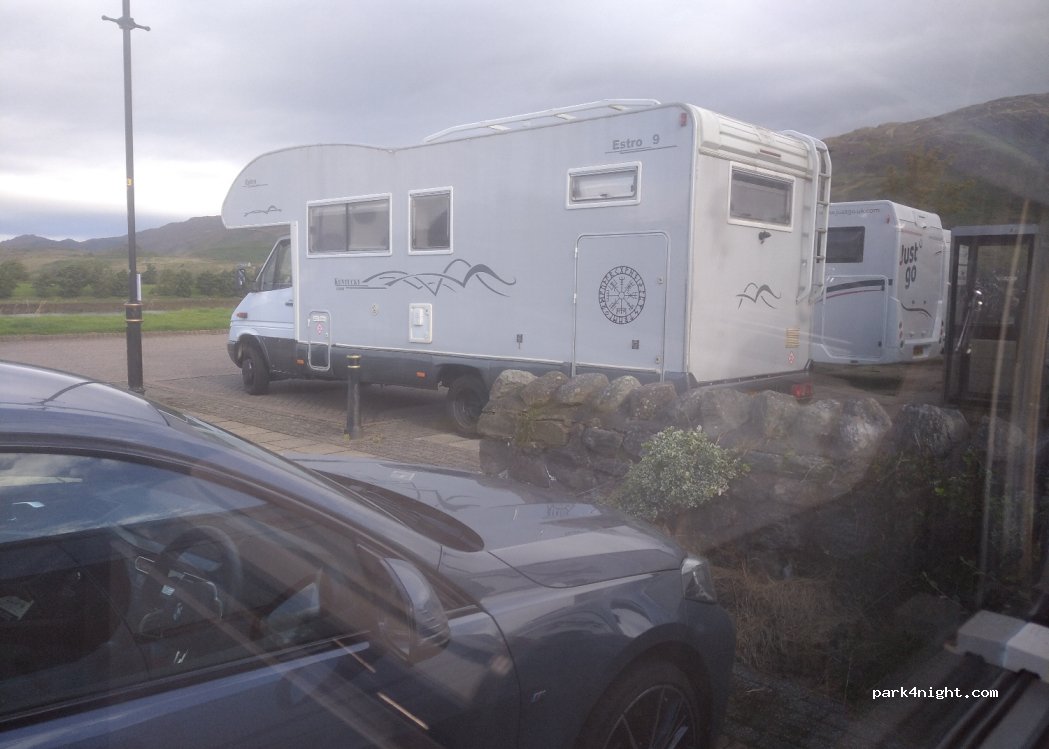 space for 5 motorhomes in the parking lot to the left as you enter. don't park to the right in front of the hotel. Clachan pub has excellent food and music on Tuesdays and Thursdays. please tip well and make a donation to the Dornie Shop Project trying to reopen the historic Dornie Shop. there are signs all over town with a QR code making it easy to donate.