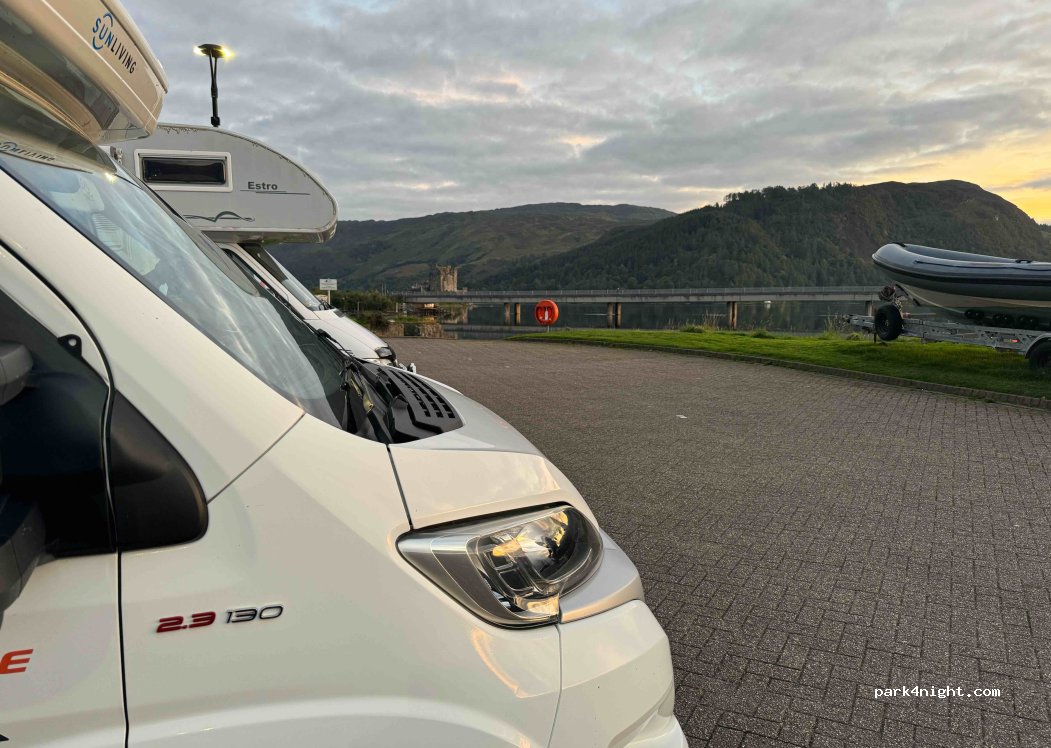 6 mixed pitches for cars and motorhomes. Convenient for visiting the castle and for an intermediate stop on the Isle of Skye. Pub and restaurant 30 meters away. No overnight stays
