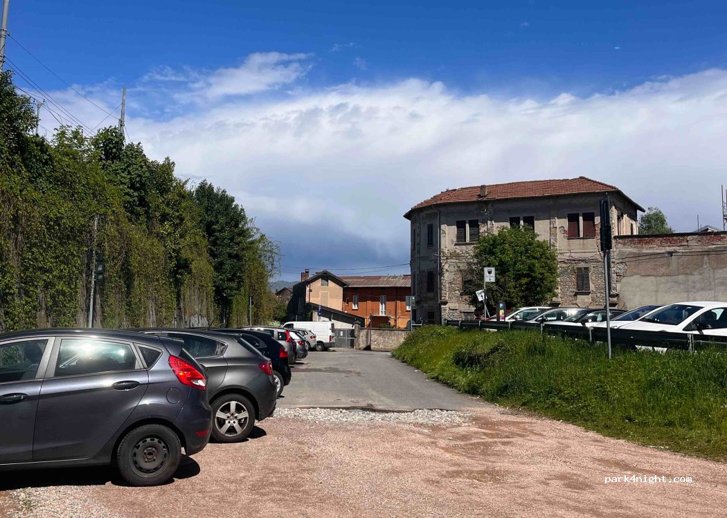 Nothing special but convenient. €2/day. Walking distance to town and to Varese Nord/train to Milan. (not always reliable). Buses excellent. Stop closeby for Sacra Monti. €1.60 per trip. No change given. Shade at back wall. Excellent cafe Macalun for coffee, ice cream. Train to Milan possible. No noise at the car park from trains though. One male a bit creepy. Stared in our windows early morning.