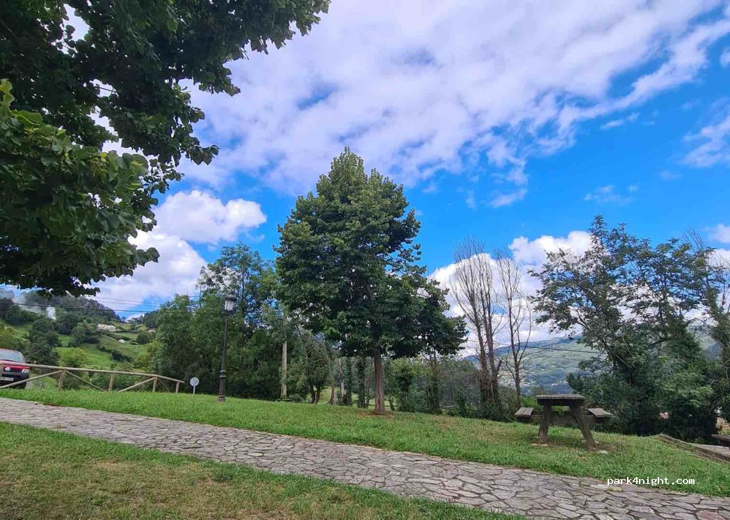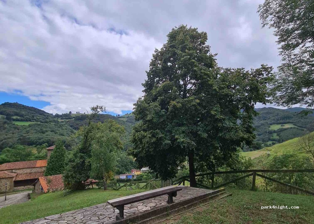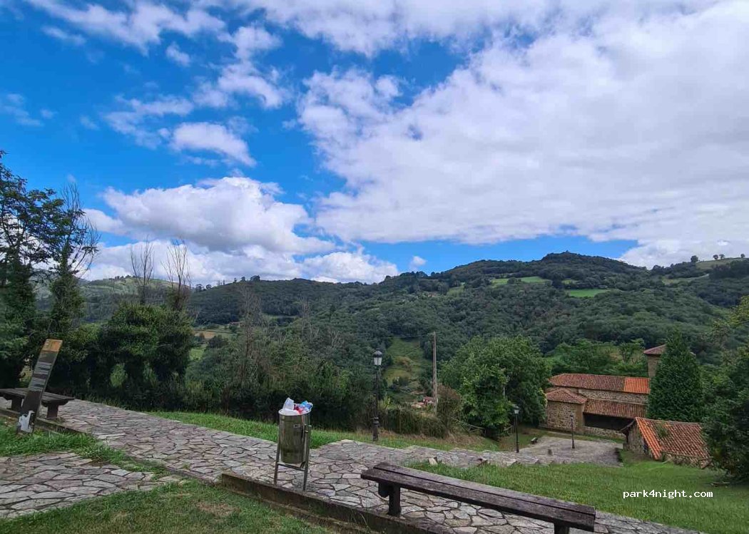 Lovely picnic area with two picnic tables and a chapel opposite. Incredible views of the meadows from a high point. Perfect for stopping to eat, even sleep or just visit.