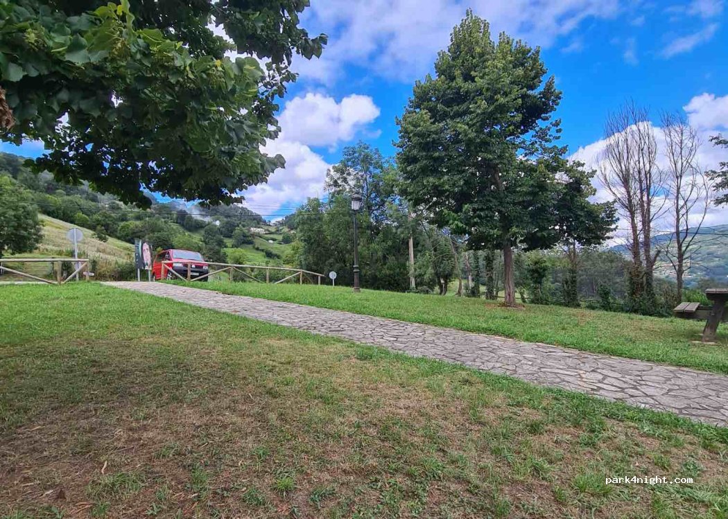Por el acceso me atrevería a decir que no es recomendable para caravanas,hay que subir mucha pendiente por carretera muy estrecha de un solo carril y de doble sentido entre casas y estrechamientos.Para furgoneta está más accesible.Para dormir no lo recomiendo,plazas demasiado inclinadas
