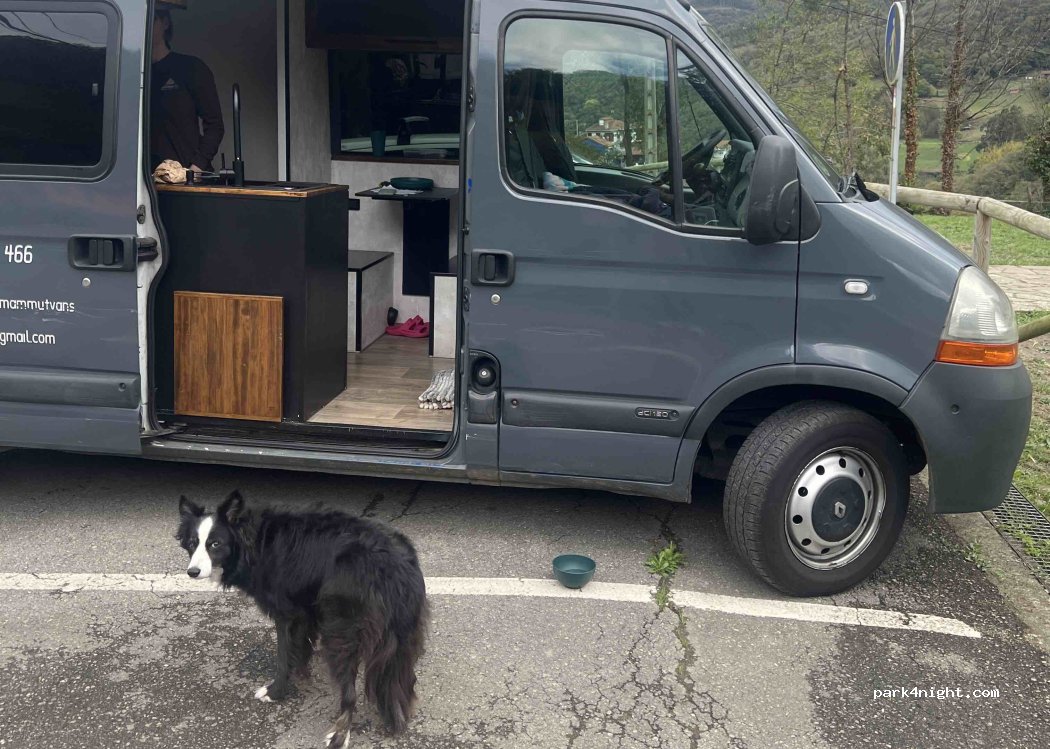 Muy bonita zona para comer. El acceso es fácil para una L2H2 si no viene ningún coche en sentido contrario. El aparcamiento tiene una vistas bonitas pero para dormir no lo recomendaría por tener una cuesta un poco pronunciada. Para estar con el perro es genial.