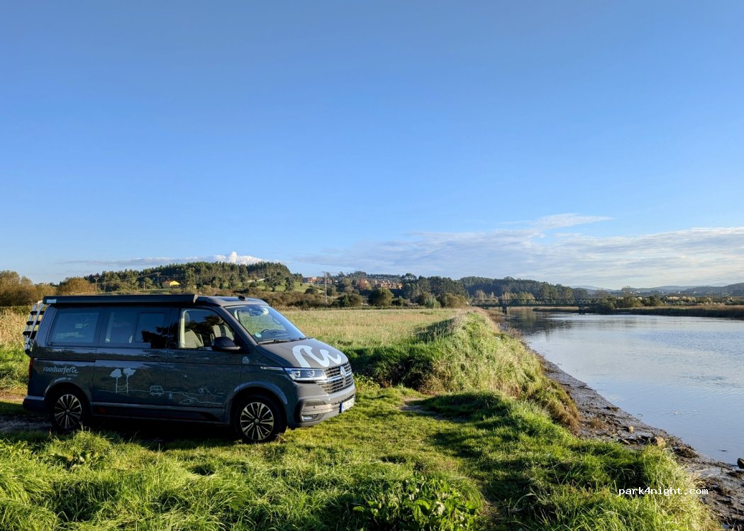 Sitio muy tranquilo ( Octubre) . No apto para grandes vehículos ( furgos grandotas o autocaravanas). Es una pequeña explanada junto a la ría en un tranquilo caminito. Está bien para para una noche y seguir ruta