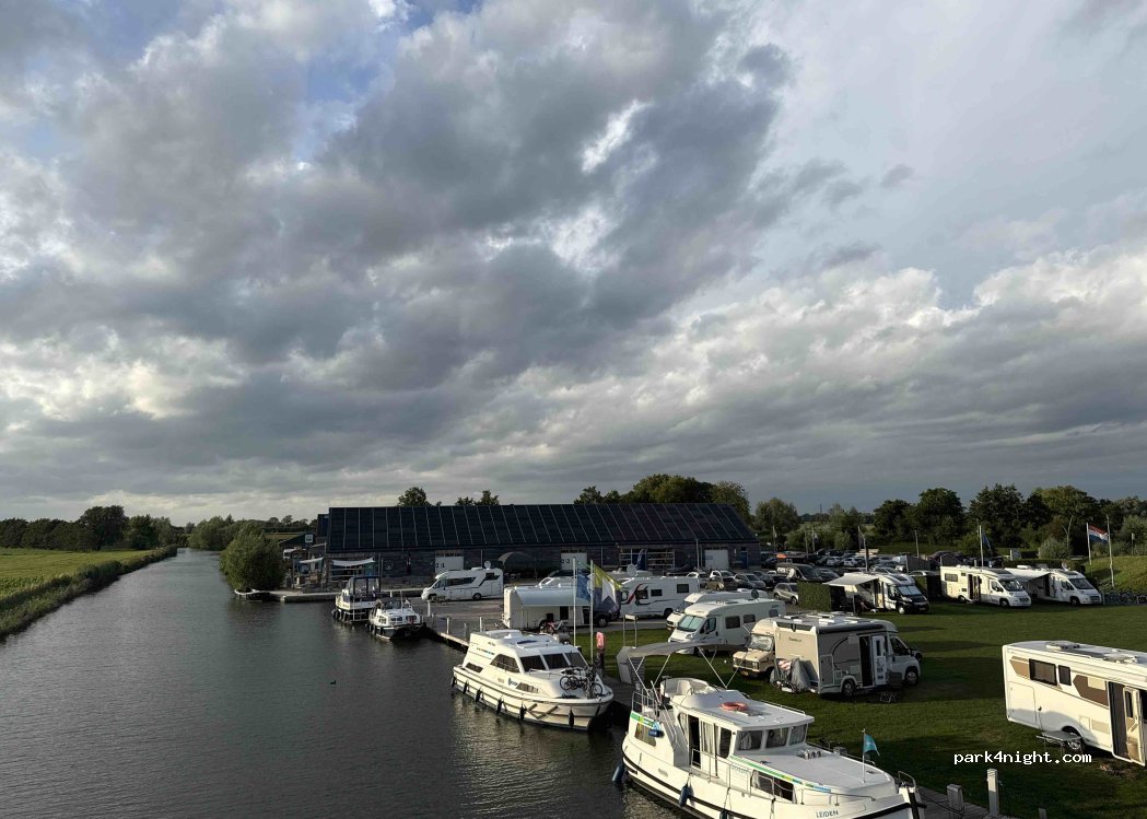 Camperplaats in een kade. Restaurant, bar, verhuur van kajaks, boten en fietsen.