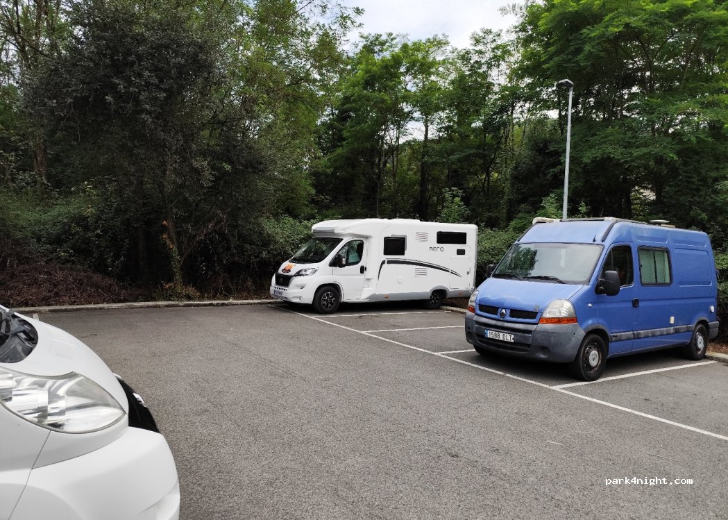 Pequeño aparcamiento muy tranquilo y con poca ocupación. Buen lugar para pasar una noche estacionado. Empieza a verse basura inequívocamente de vehículos vivienda.