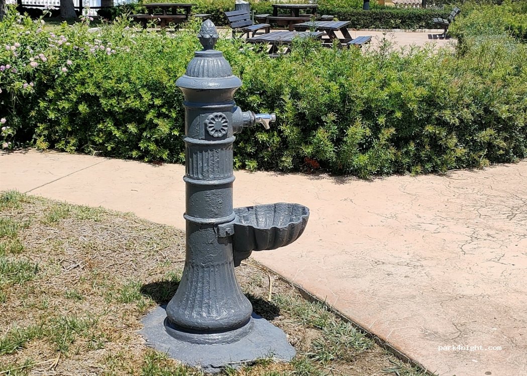 Public children's playground, with clean toilets, 3 water fountains, trash cans, picnic tables.