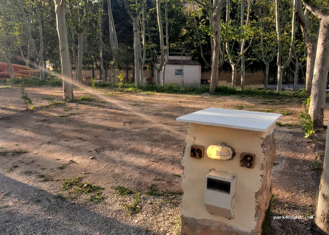 registrarse en la web pagar 20€.esperar que te lea la matricula para que se levante la barrera. parcelas nivelada con electricidad. pocos fregaderos. vaciado de grises y llenado agua. pocos aseos y muy lejos, hay que bajar y cruzar la rambla.pueblo cerca