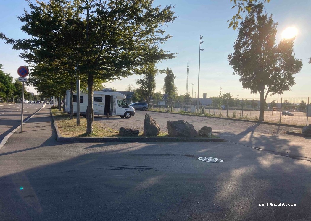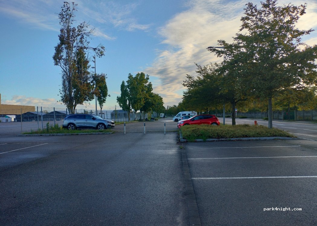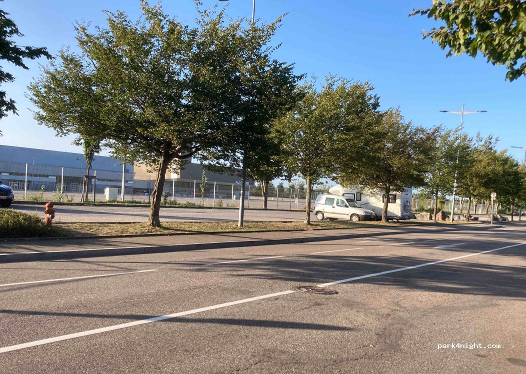 Parfait pour visiter Mulhouse. Grand parking gratuit sans limitation de hauteur. Très calme. Arrivés à 19h, nous avons pu faire les marchés de Noël et passer la soirée dans le centre. Nuit au calme absolu. Très appréciable de trouver ce genre de spot aux abords des villes.