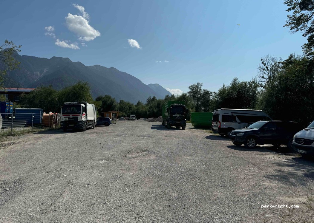 Parking dans la zone commerciale. Non loin de l'autoroute. Bon point de départ pour des balades à vélo ou des randonnées. Terrain relativement droit.