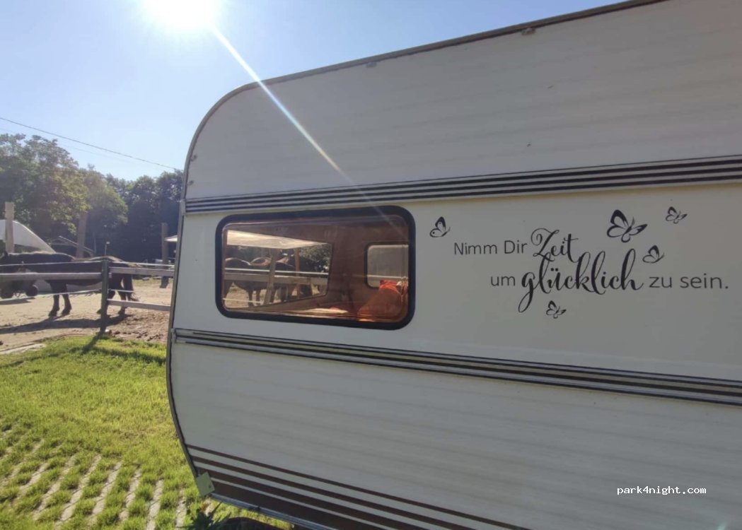 También alquilamos una caravana sencilla o nuestro picadero con calefacción (bajo petición, tarifa de uso con cocina incluida: 6 €).