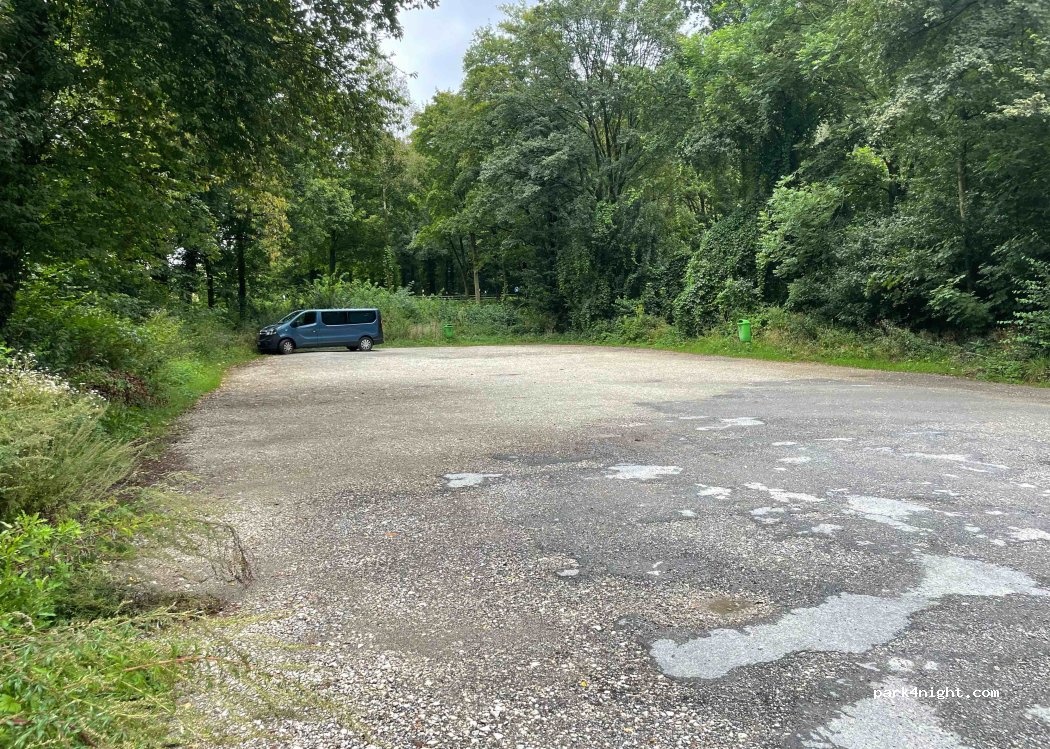 Parking pouvant accueillir jusqu'à 15 grandes voitures ou mobil-homes. Voie express à côté, mais pas vraiment bruyante car presque tout le parking est entouré d'arbres.