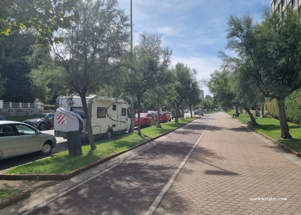 Parking dans la rue, toilettes publiques à 350 m et douches sur la plage de Sardinero à 500 m. Nous avons passé une nuit ici et bien que nous soyons dans une rue très fréquentée, nous n'avons pas remarqué de bruit excessif. Selon la réglementation de Santander, vous pouvez vous garer partout où cela n'est pas expressément interdit.