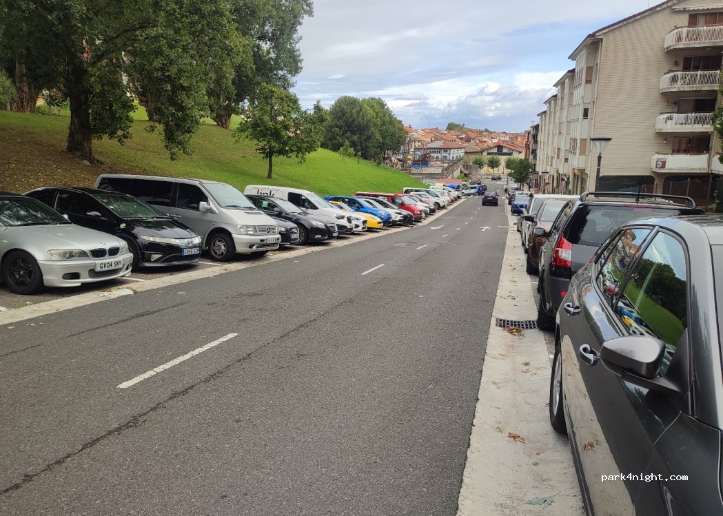 Kostenloses Parken, ab der Mitte die Straße hinauf, wo nicht R E steht.