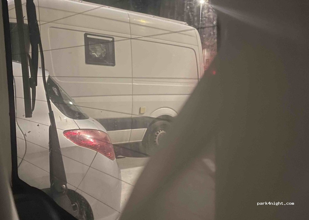 Typical free Road parking, but next to a large park on one side and a very quiet big building on the other side of the road. Other adjacent roads seem possible to park as well. As it's next to a public park, which is locked at night, residential buildings, a few food places and a nearby football stadium, there's not much traffic and quiet the whole day on the Sunday I was there.