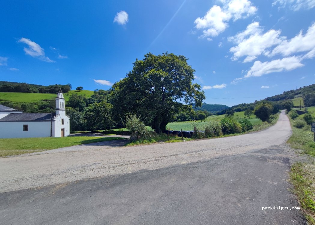 Next to the small hermitage of San Bartolomeu de Cadavedo, cows and horses graze, mooing and neighing, sometimes reaching, depending on which way the wind blows, a certain smell. This is what they call the village around here, and I love it. Being able to have these views while the wind moves the grass, birds of prey fly over you and the sun warms your face at times when it peeks through the clouds is priceless. If you are looking for something else, go somewhere else, there is not even 3G here, only calls and H. You can walk and little else, with luck talk to one of its less than 50 inhabitants, or you can simply enjoy the surroundings. The entrance is easy and there is leveled asphalt ground and a grass terrace above, between the hermitage and the road.