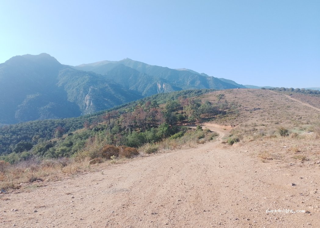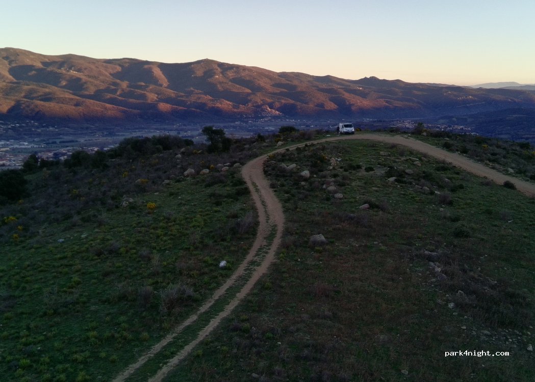 Parking in the sun but with a breathtaking view, from the Canigou massif to the sea. Approach on a dirt road following the aeromodelling signs, road doable with a short wheelbase van. Silence reigns here
