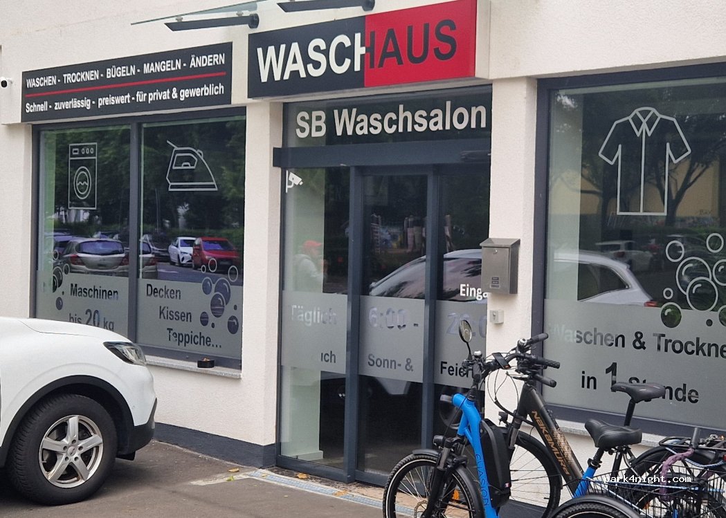Selbstbedienungs-Waschsalon, Spielplatz direkt daneben und Parkmöglichkeiten in den umliegenden Straßen (zB Paulusstr. direkt neben dem Spielplatz), es gibt auch direkt vor dem Waschsalon zwei Kundenparkplätze, aber eher für kleinere Vans. Waschmittel kann selbst mitgebracht werden oder gekauft werden, nur Barzahlung (Scheine und Münzen).