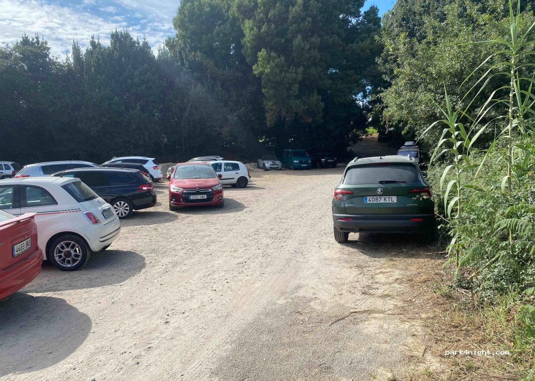Il y a trois niveaux de parking gratuit, du sable et des arbres autour. Il paraît qu’il n’y a que des voitures, pas de camping-cars. Idéal pour les fourgons. Super pour se garer et aller passer la journée à Las Cies.