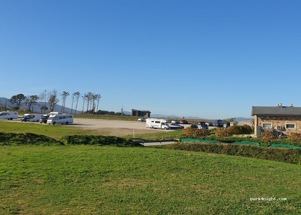 Grand parking juste en face de la Playa de las Catedrales. Grande partie pour camping car, et une bonne partie au fond du parking n’est pas à plat du tout, prévoir des cales. Il y a des rails au fond du parking, 1 train est passé le soir, et 2 tôt le matin. À part ça, aucun probleme et très pratique.