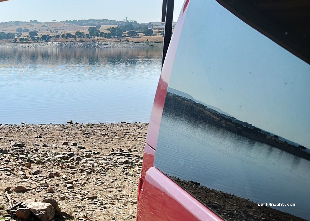 Es war ein perfekter Ort zum Übernachten, man nimmt den Eingang kurz vor der Brücke, und am Eingang gibt es einige Unebenheiten, die aber leicht zu überwinden sind, der Eingang zum Stausee ist sehr einheitlich, so dass jeder baden kann.
