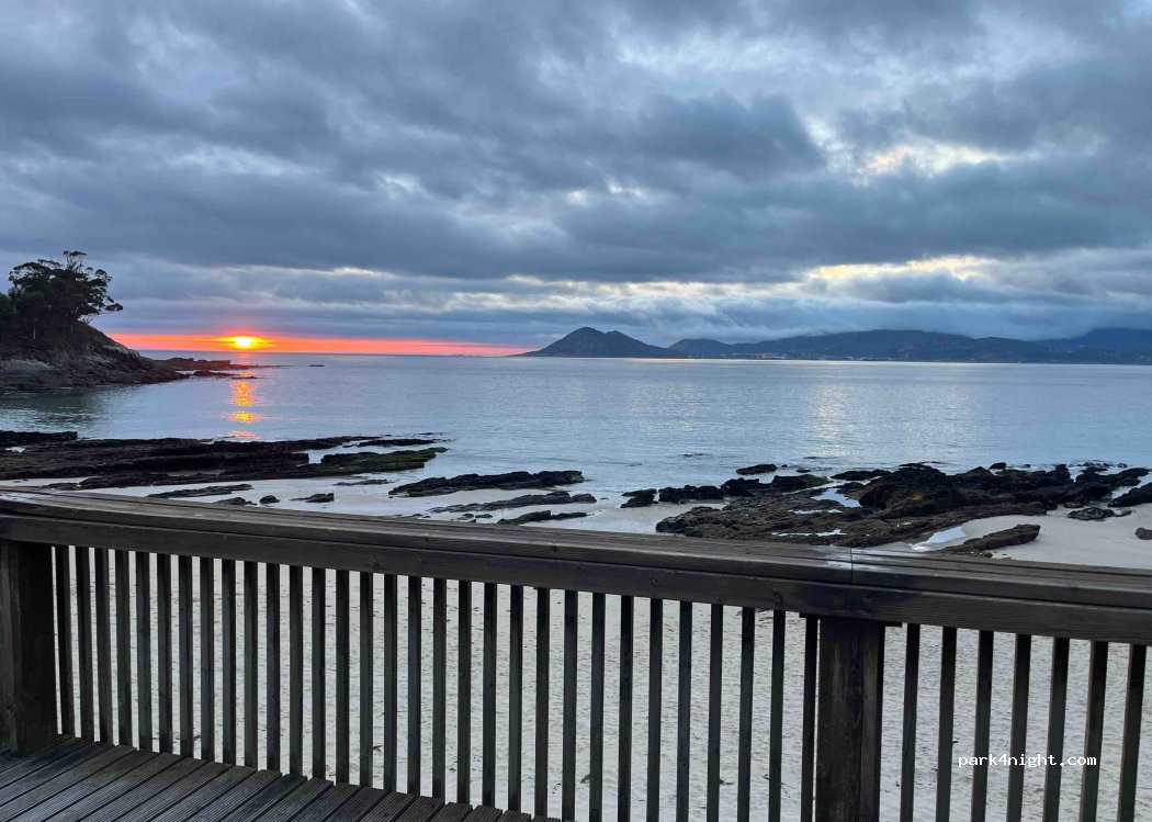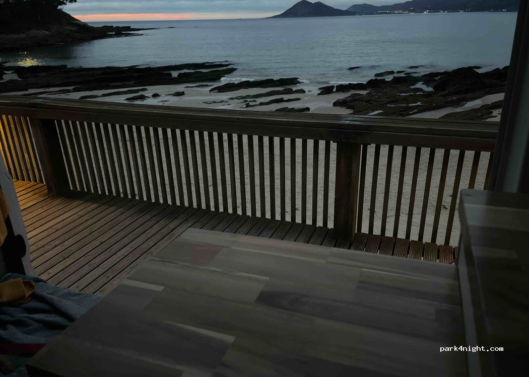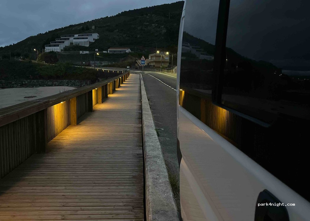 Ideal for spending the day on the beach and staying overnight. You park on the beach, good views, the only bad thing is that you are on the side of the road but at night at this time of year few cars pass by. Bar right next door